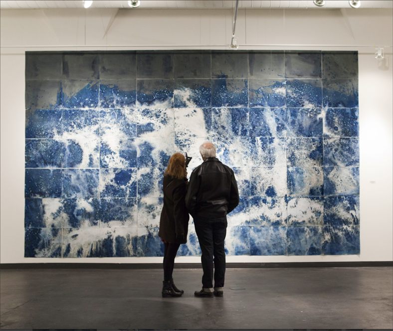 This body of work is the result of Riepenhoffs interaction with the sea. She typically creates very large cyanotypes, on location and uses the sea shore to form a print.