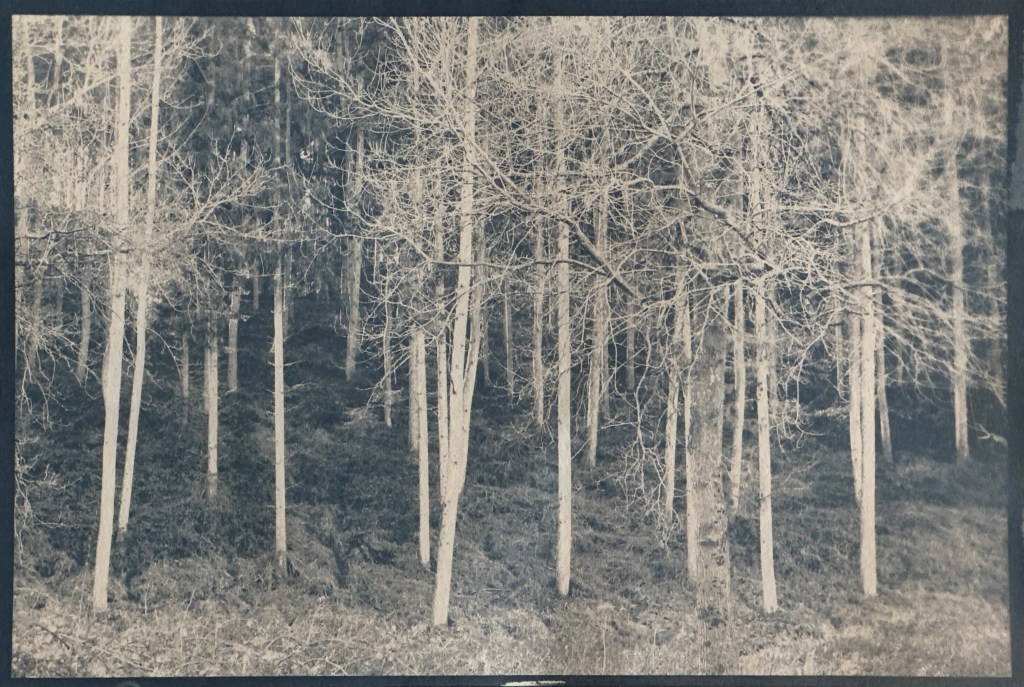 The final image is my favourite overall. I toned this in coffee also and the effect is exactly what I was after. I have been greatly inspired by the work of Albarran and Cabrera and this was my attempt at creating something along those lines. It is reminiscent of Japanese art. The Japanese practice of ‘Shinrin Yoku’ has gathered much attention in recent years, it is a form of relaxation that involves immersing oneself in nature. Its aims are to find peace and quiet in woodland spaces, absorbing the sights and sounds whilst breathing deeply. It is a mindful experience, which links in to the cold water immersion that I was practicing at the time. I did attempt a larger scale version, using the bleach and tone process, but it didn’t work very well in time for my submission. I lost too much detail unfortunately. I may attempt to use this once I have access to the larger printers at university in September.