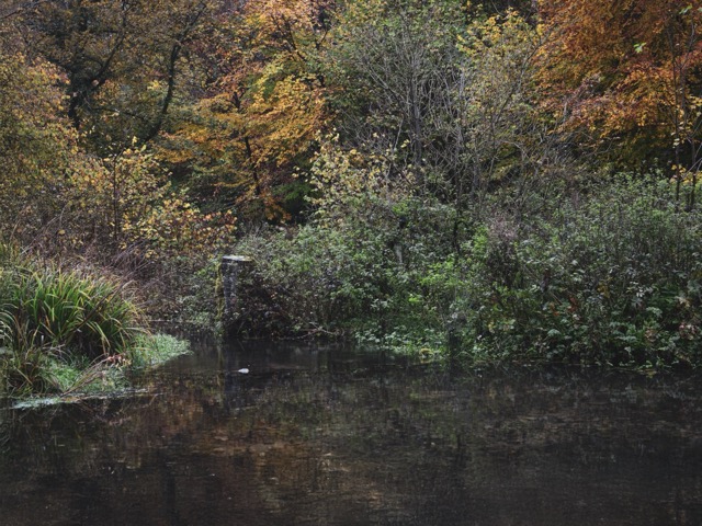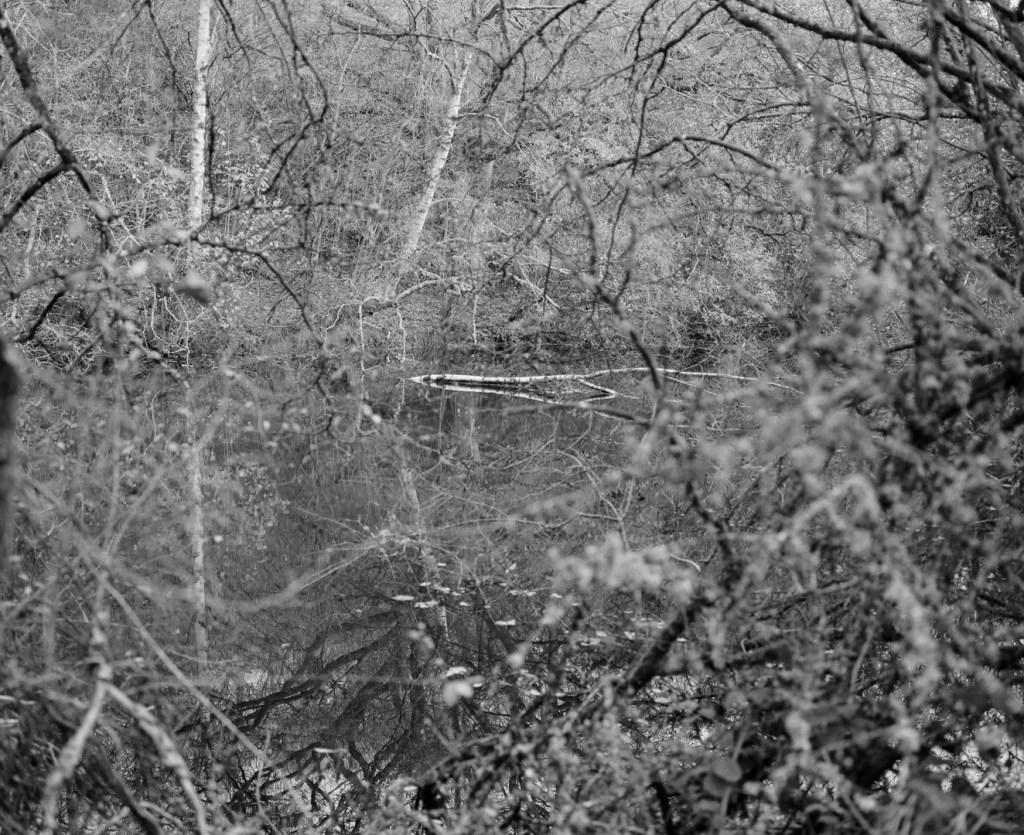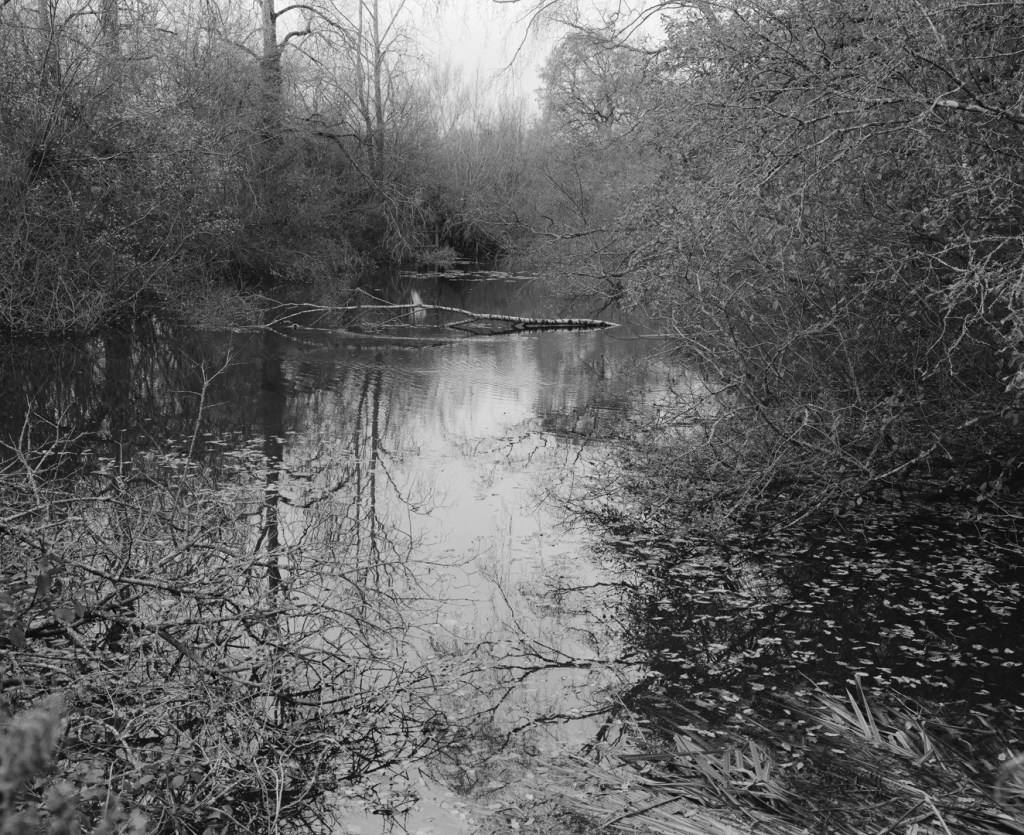 I was very pleased at the results of the shoot this time. I think there was a lot of interesting space to move around and immerse myself in, it was extremely quiet and I could easily lose myself in my thoughts. The memories triggered here were clear and vivid. I was here for several hours as I lost track of time, being fully immersed in the landscape. The colour of the lake was onyx like in areas underneath the tree canopy and it was a scene that I stared into for some time, trying to make out whether or not I could see the bottom of the pond. I had some polarising sunglasses with me to try and see beyond the surface, I could just make out a bit of debris as it settled on the bottom.