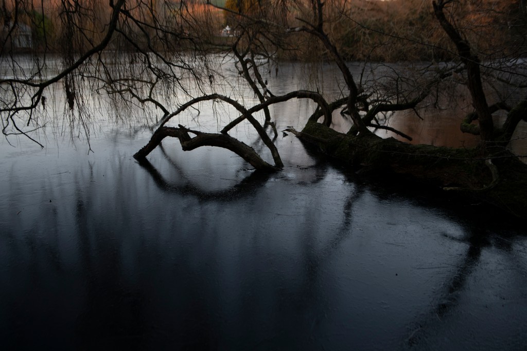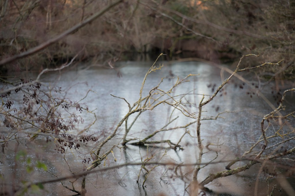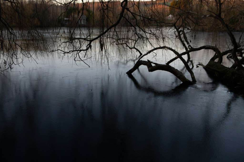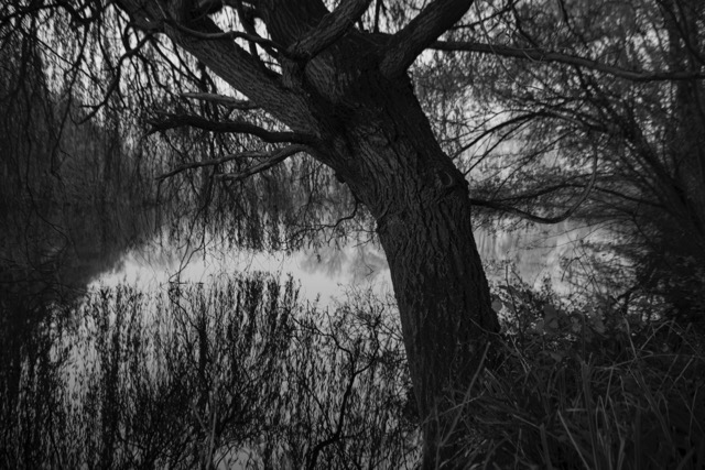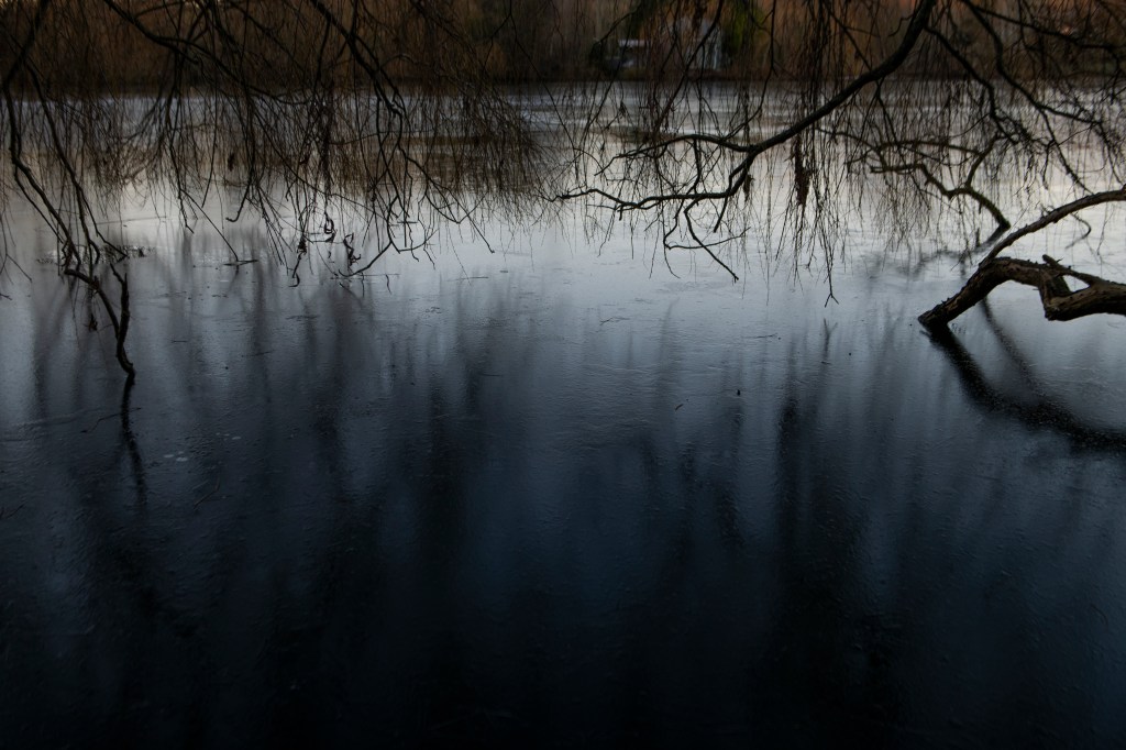 This is a slide show of my most recent shoot, this was during a frozen spell at the turn of the year, this turned the lake at Dacha into a whole other world. I spent a few late afternoons walking through here as the light faded, it had a completely different feel to it. There was no wind and it was eerily still you can see from several of the images that even with a slow shutter, there is little movement in the trees branches. There is a satin effect on the surface of the middle lake, I love how the fading light makes it shine silver, and the tree branches frozen in time poking out from the ice. There is a stillness to the photographs that signifies a sort of solitude and silence, which is as I have been trying to portray in my subject.