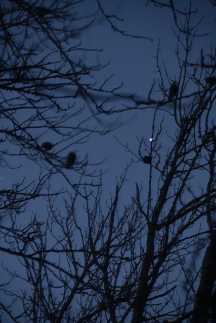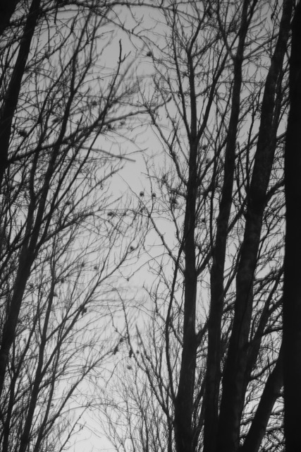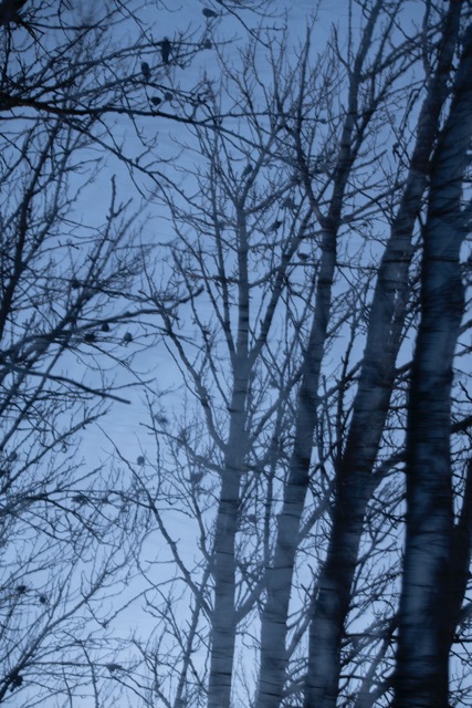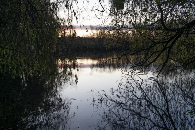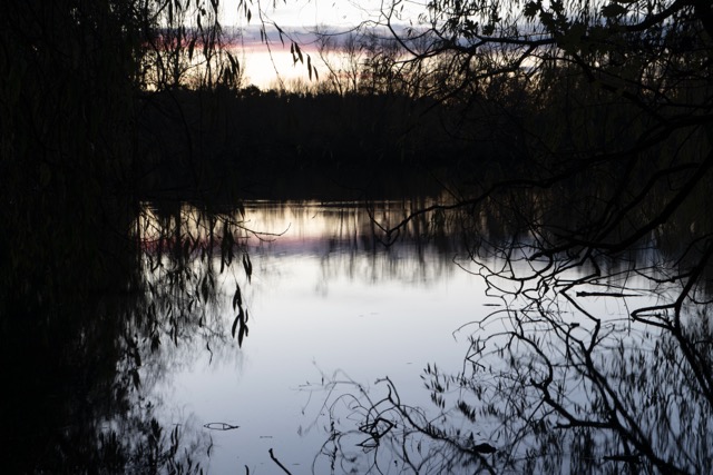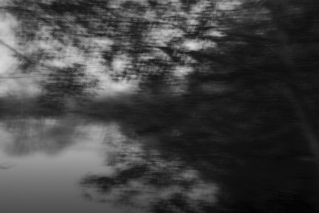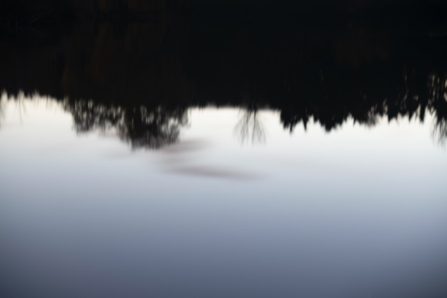 I have converted a few of the images to black and white as I think this added to a sense of timelessness The jackdaws in the trees were very vocal, as were the pheasants! As it was their time of day to set up roost in the trees. This was tricky to capture on camera but I rather like the movement in the treetops whilst also revealing the silhouette of the birds settling there for the night. The canopy of the trees was especially dramatic because of the clear sky and full moon that night. They cast their silhouette on the lake and so with the longer exposure I had the effect of smoth mirror like surface of the water and the reflection of light cloud, branches and leaves which had slight blur to them.