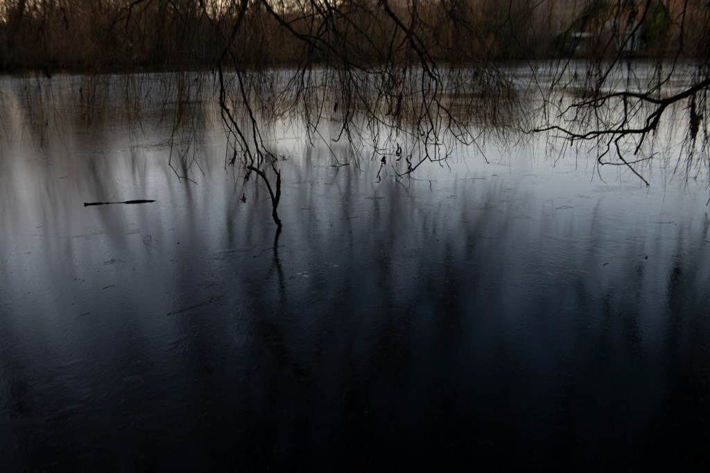 I photographed an area of the lake with 120 kodak portra 400 film, a few days into January just after the ice had thawed. Having decided to focus on using analogue images for my book, I wanted to have a wider selection of images to see whether I could have a balance of colour and black/white photographs to choose from. By this point, I had identified several areas of the lake that I was drawn to, so although I engaged in a walk, I had a preconceived idea about where I was going. I attempted to note down a few words as a sort of poetry. Having been influenced by Mary Oliver’s nature poetry, especially her ability to say as she see’s, I wanted to practice this. I am not sure I want to use words alongside my work, I will most likely make a late decision on this!