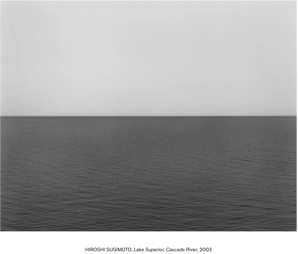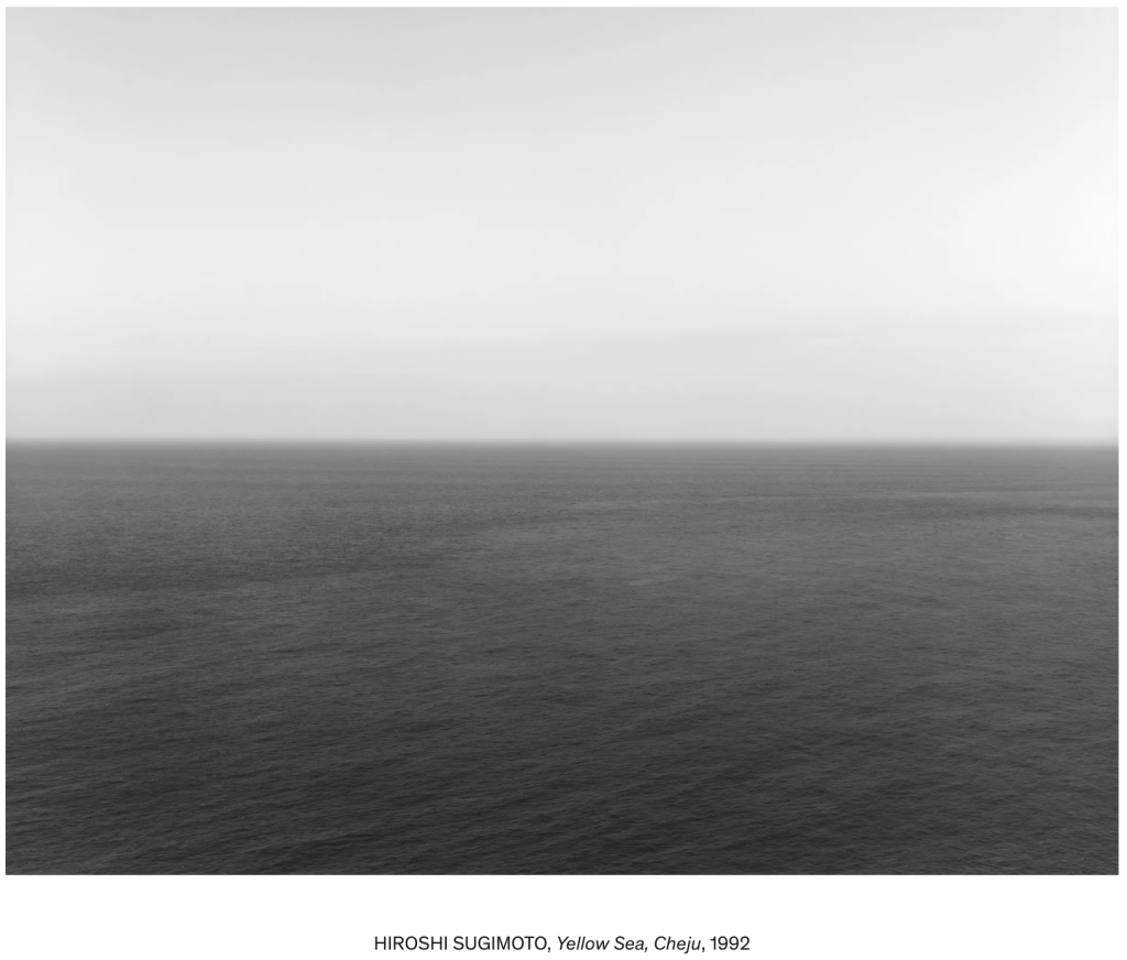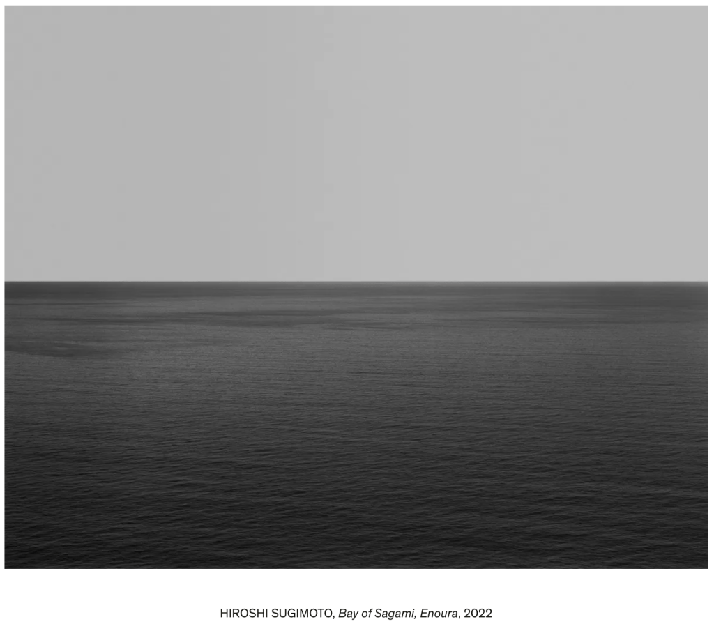 Sugimoto’s seascapes are presented in gallery spaces as large prints (around A0) allowing the viewer to experience the perspective up close. His words below describe his motivation and further evidence of his work being meditative & contemplative.