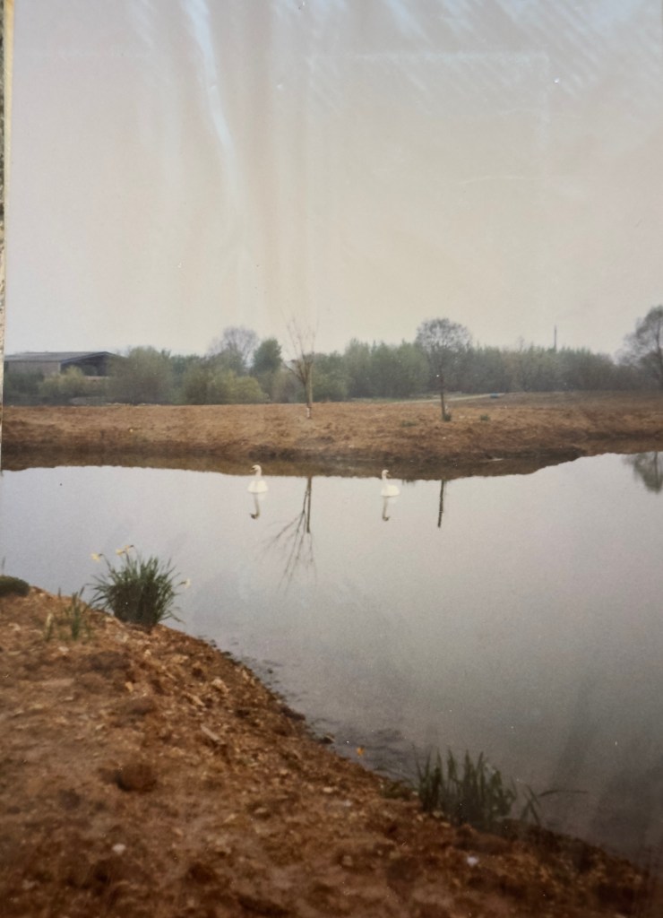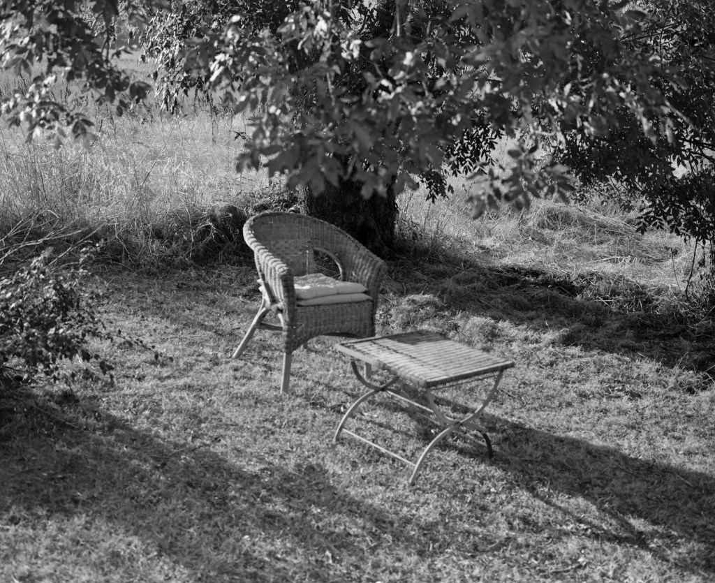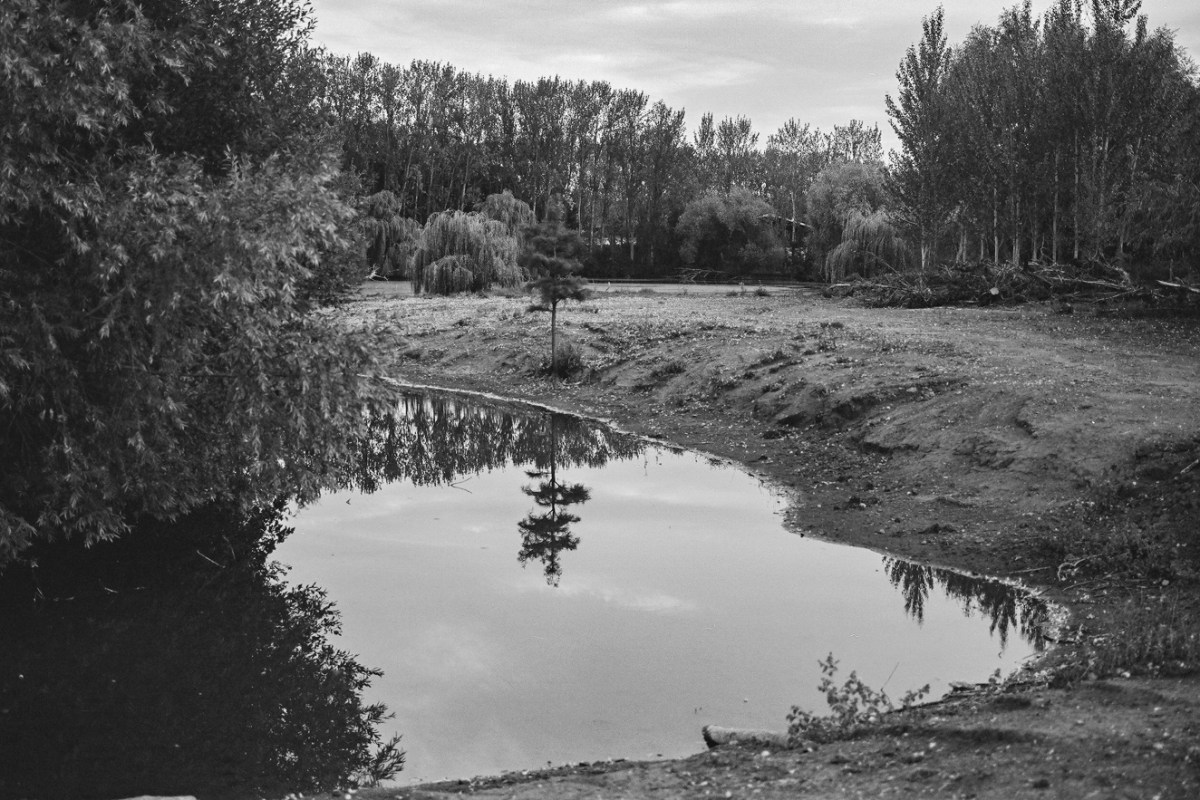 In the first few images of the ‘square lake’ I have concentrated on the aspect of the lake which we use for socialising. My children are there as soon as the temperature climbs in the spring, until the last of the summer warmth. There is a deep connection with this place, when I think about the summers spent here and some essence of each of us remaining, memories are literally contained here and the rope swing in particular symbolises that. I admit to a tinge of sadness when I photographed this, knowing that this is another year of a rapidly disappearing childhood done. I think that may be why I chose to convert the tree and rope swing images in to black and white. I didn’t want the distraction of colour to detract from the memory. The garden hoe was used by the children to ‘grab’ the handle of the rope swing to pull it back in, ready for the next launch. The presence of the swan, peacefully swimming along whilst I photographed, did make me think about how it is probably enjoying the peace and quiet now. The white chair in the background, and also of the yellow boat on the late, as well as the kayak on the shore, is further intended to show where someone once was, enjoying the surroundings.